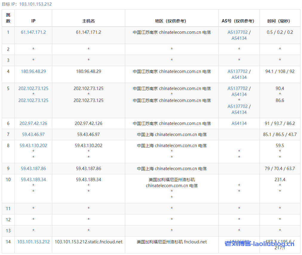 4 59.43.189.33 127.51 ms * China, Shanghai, ChinaTelecom
