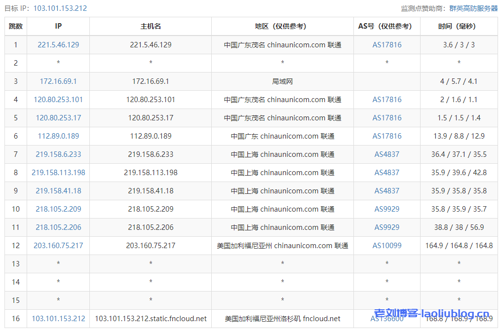 15 211.136.95.226 186.25 ms AS56048 China, Beijing, ChinaMobile