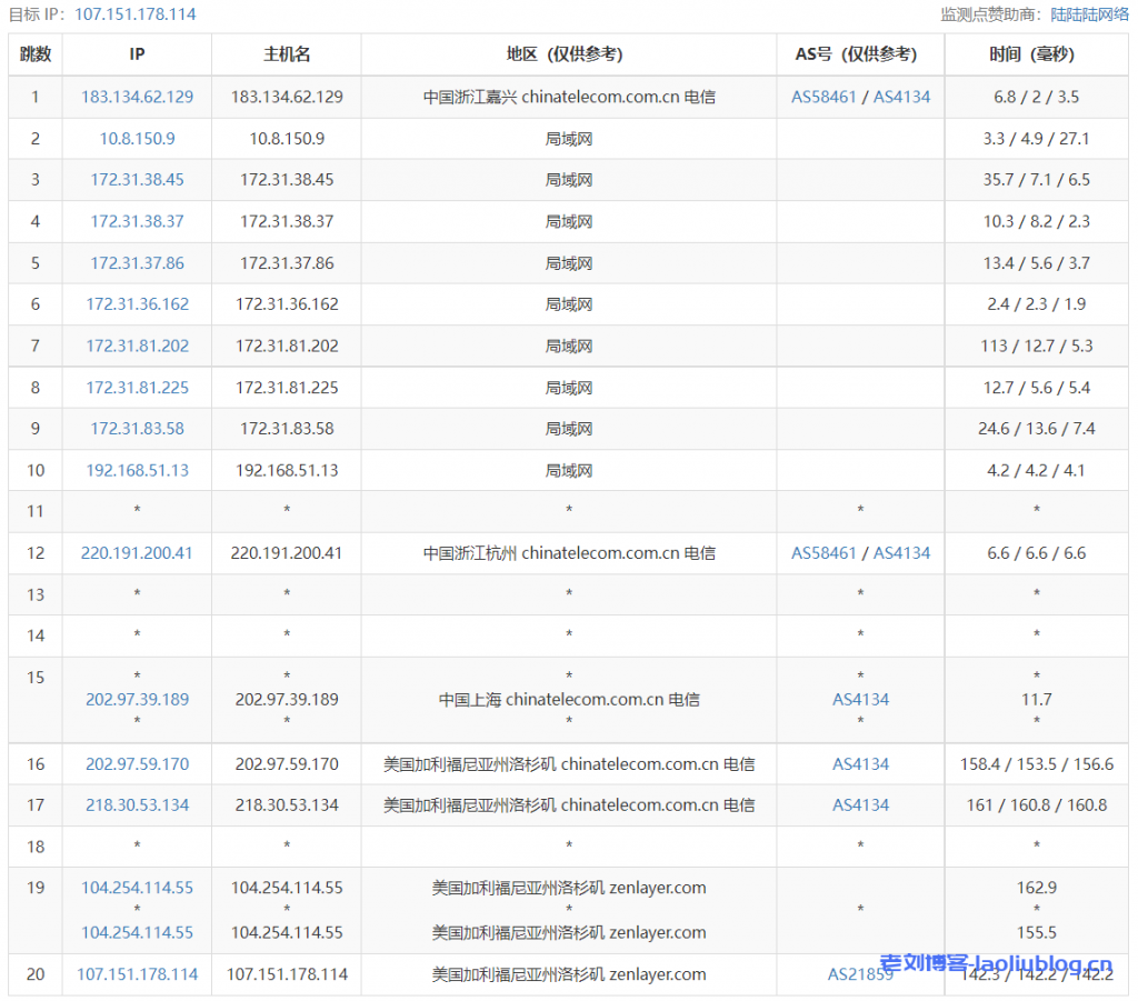 4 218.30.53.133 2.83 ms AS4134 United States, California, Los Angeles, ChinaTelecom