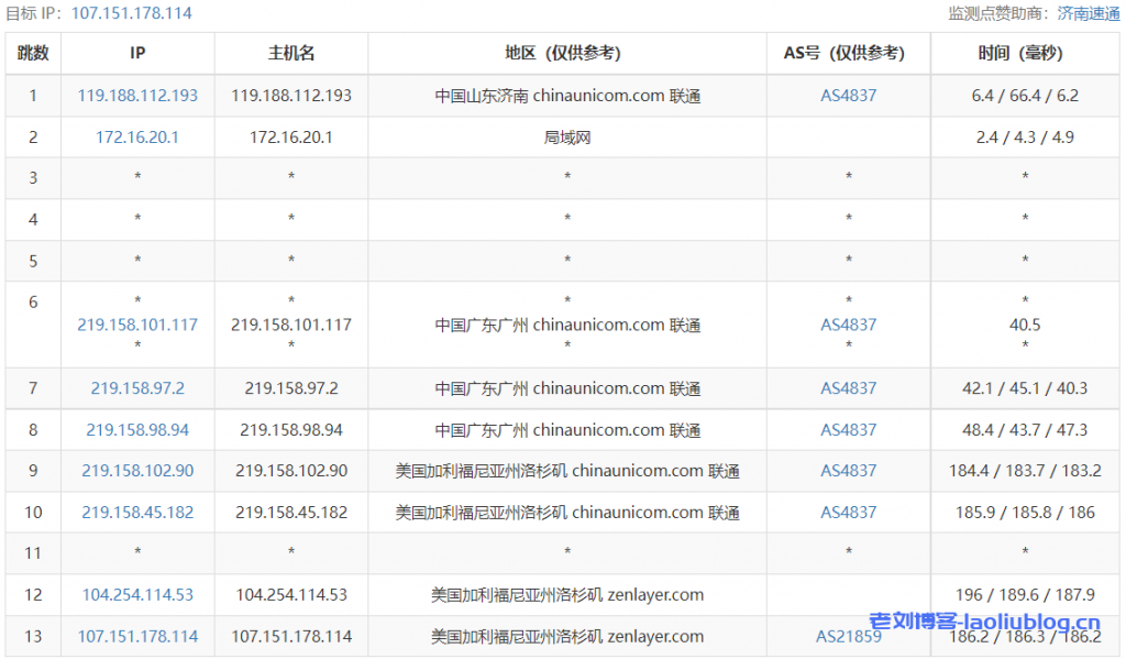 4 219.158.45.181 6.89 ms AS4837 United States, California, Los Angeles, ChinaUnicom