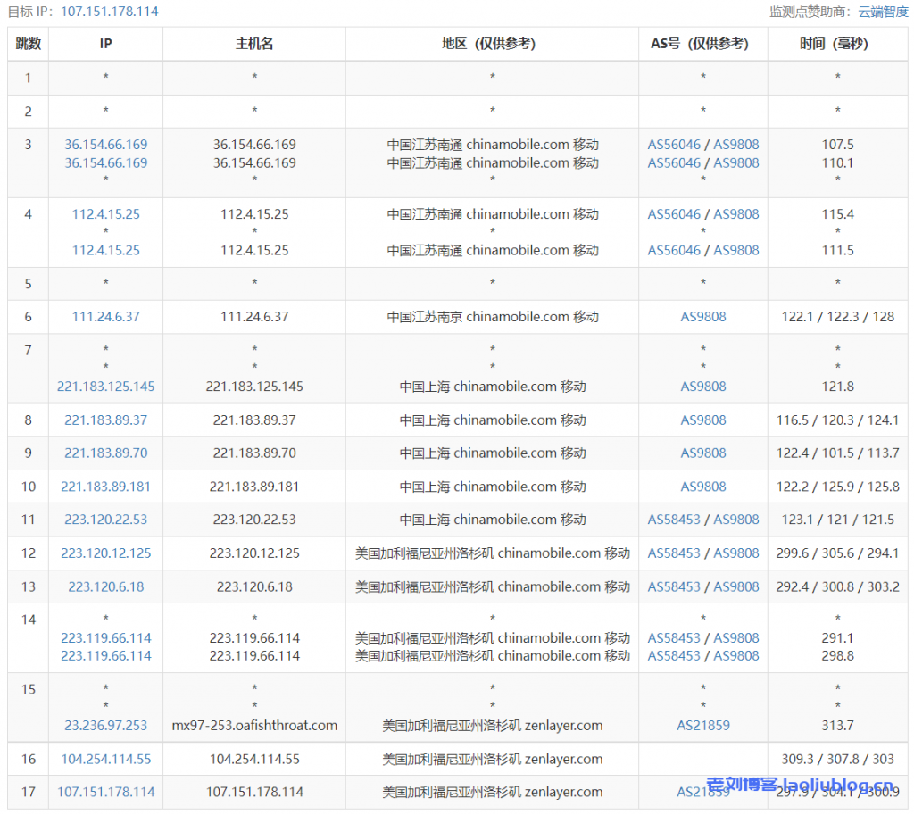 4 223.119.66.113 1.08 ms AS58453 CHINAMOBILE.COM 骨干网, ChinaMobile