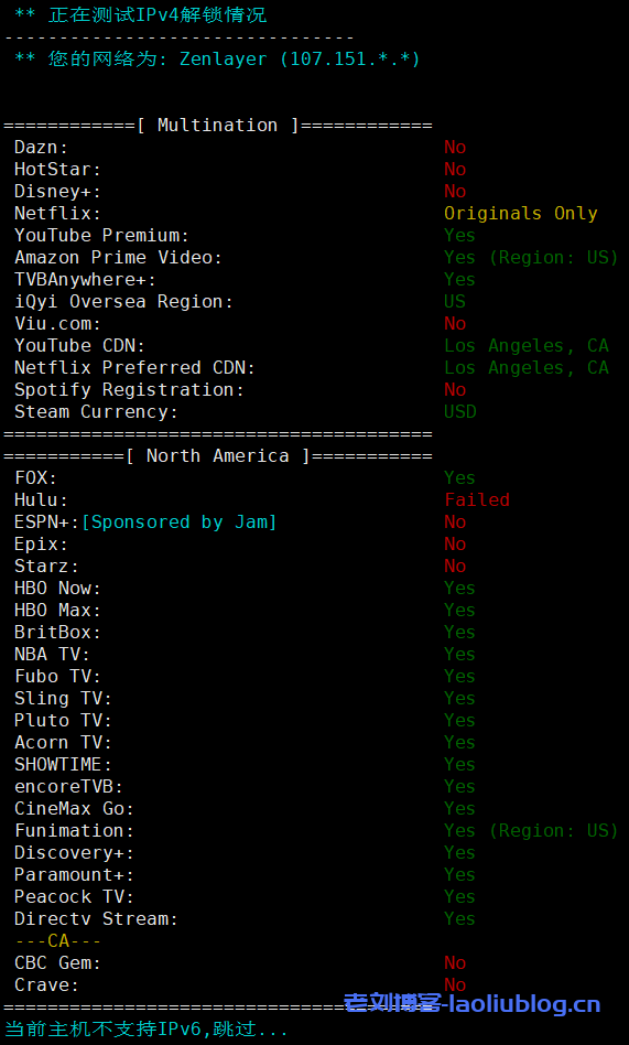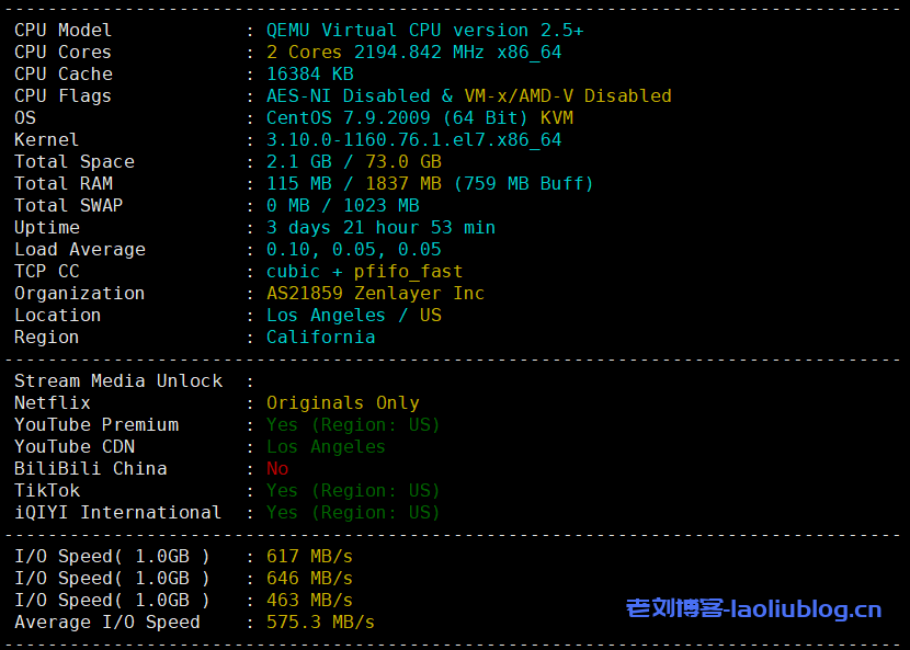 zenlayer自己的广播IP,硬盘I/O大致575MB/S的样子;TIKTOK流媒体解锁,美区:OK