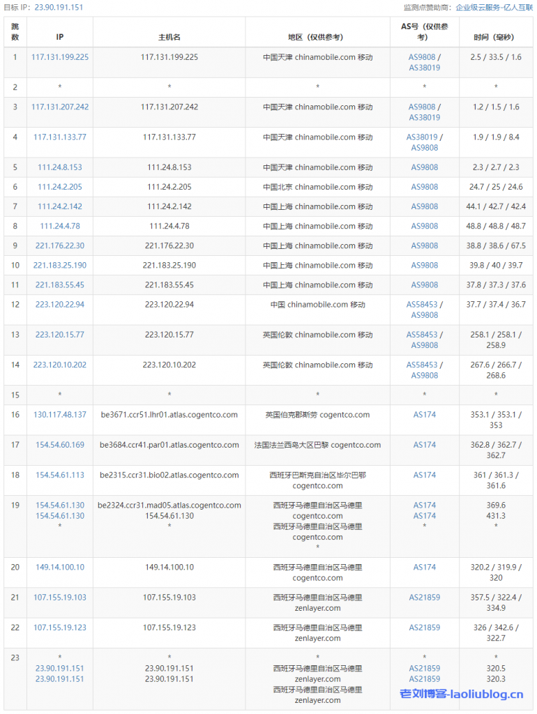 移动去程,移动国际CMI对接cogent直接到英国过法国然后到西班牙
