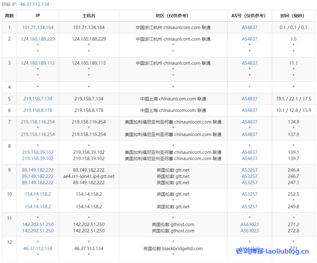 4 89.149.181.102 126.19 ms AS3257 United States, California, Los Angeles, gtt.net