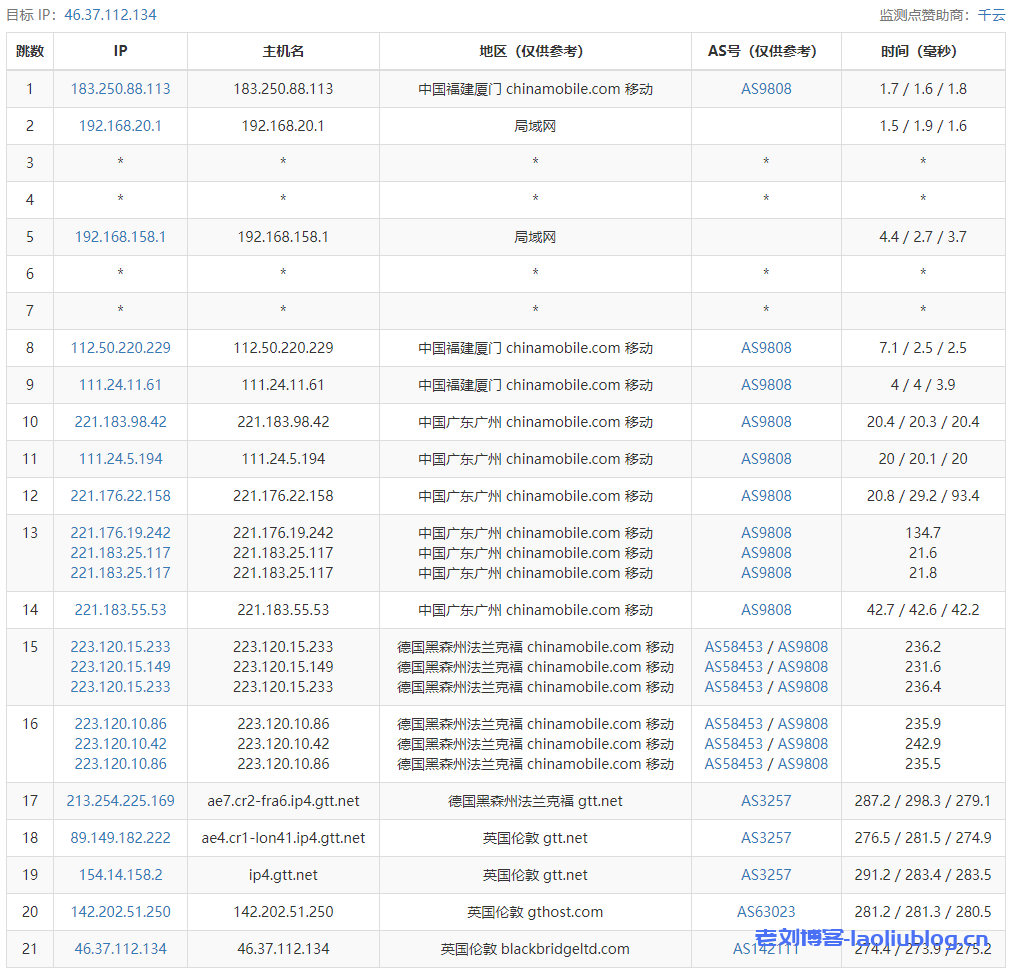 10 154.54.28.70 111.23 ms AS174 COGENTCO.COM 骨干网, cogentco.com