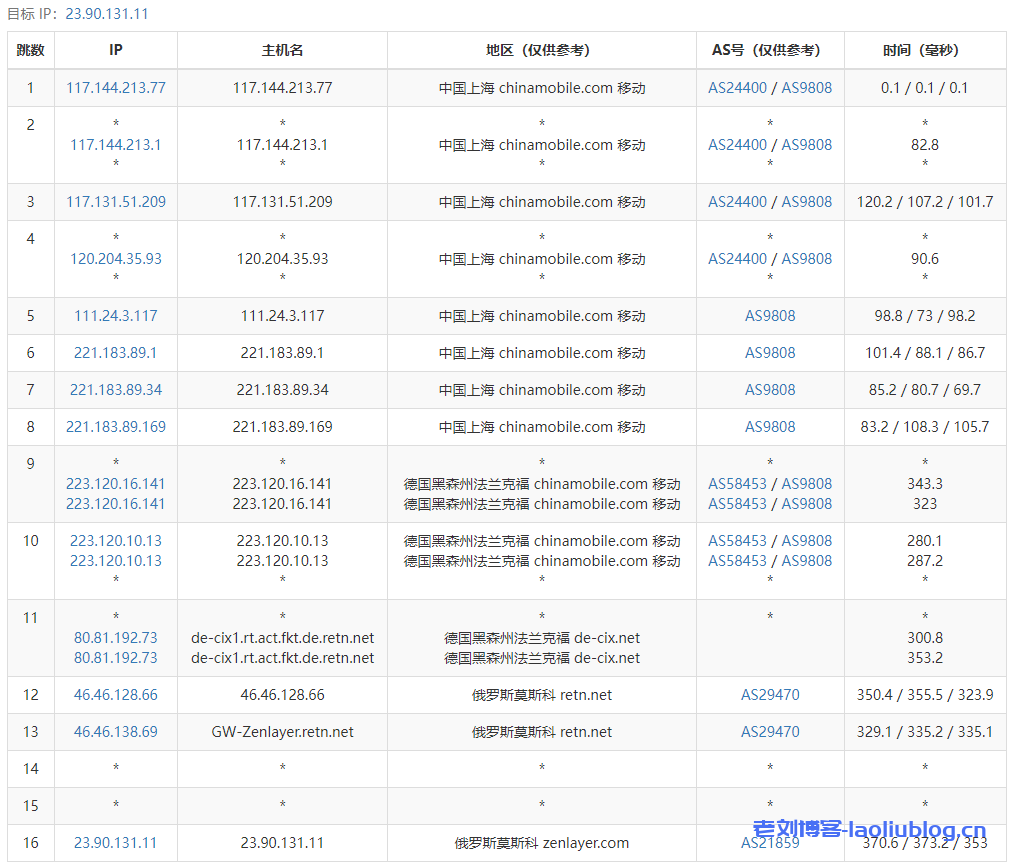回程,到国内移动:全部走RETN到德国,经过de-cix数据交换中心之后走移动在德国法兰克福的节点直接回国
