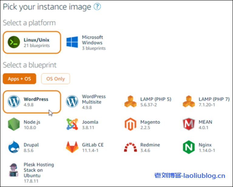 2.在 Lightsail 中创建 WordPress 实例