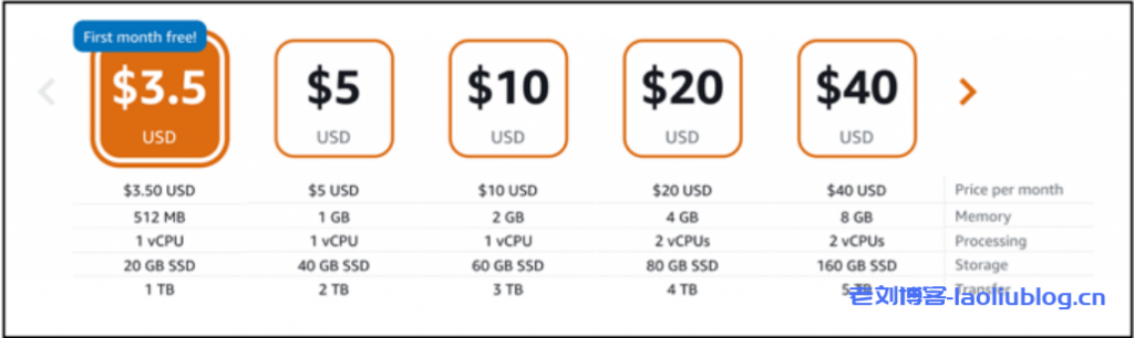 计划包括可预测的低成本、机器配置(RAM、SSD、vCPU)和数据传输许可。您可以免费试用价值 3.50 USD 的 Lightsail 计划一个月(最多 750 个小时)。AWS 将为您的账户提供一个月的免费使用资格。