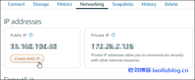 b.选择联网选项卡,然后选择创建静态 IP。
