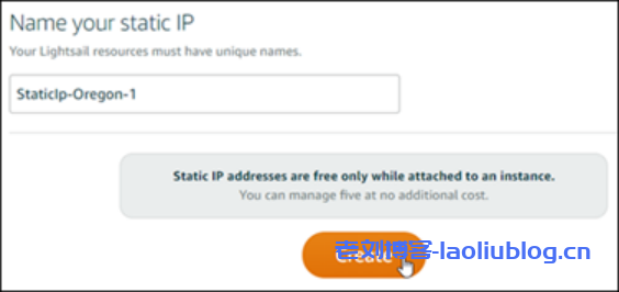 d.命名静态 IP,然后选择创建。