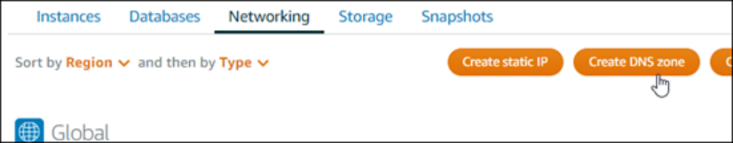 a.在 Lightsail 主页的联网选项卡上,选择创建 DNS 区域。