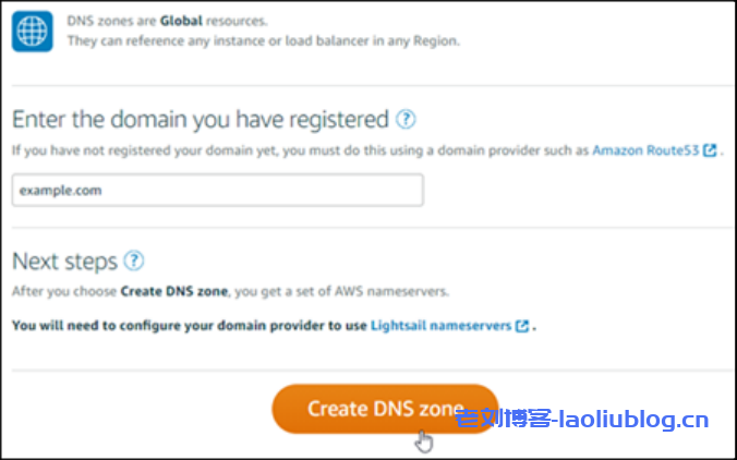 完成以下步骤,创建 Lightsail DNS 区域并将域映射到 WordPress 实例。