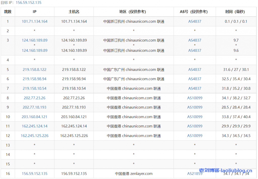 联通去程,走的是AS4837直达香港AS10099后再去的机房