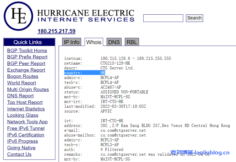 六六云香港三网CN2 GIA建站VPS看看是不是原生IP,确为香港原生IP