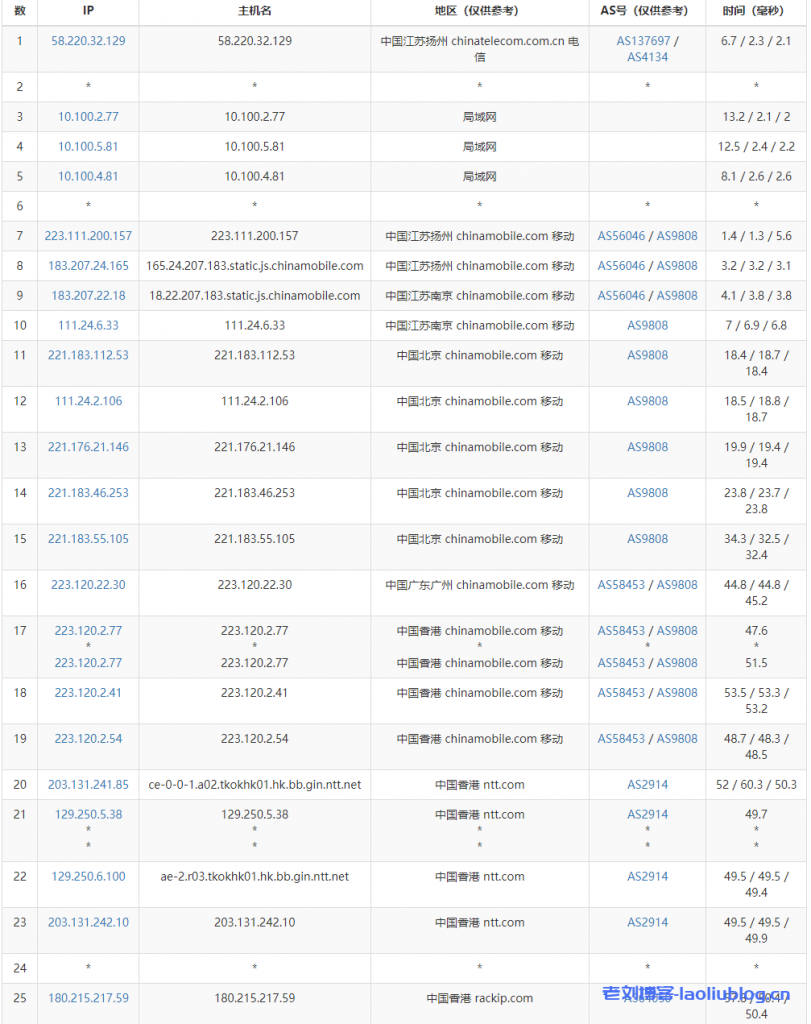 4 223.120.3.85 3.69 ms AS58453 China, Hong Kong, ChinaMobile