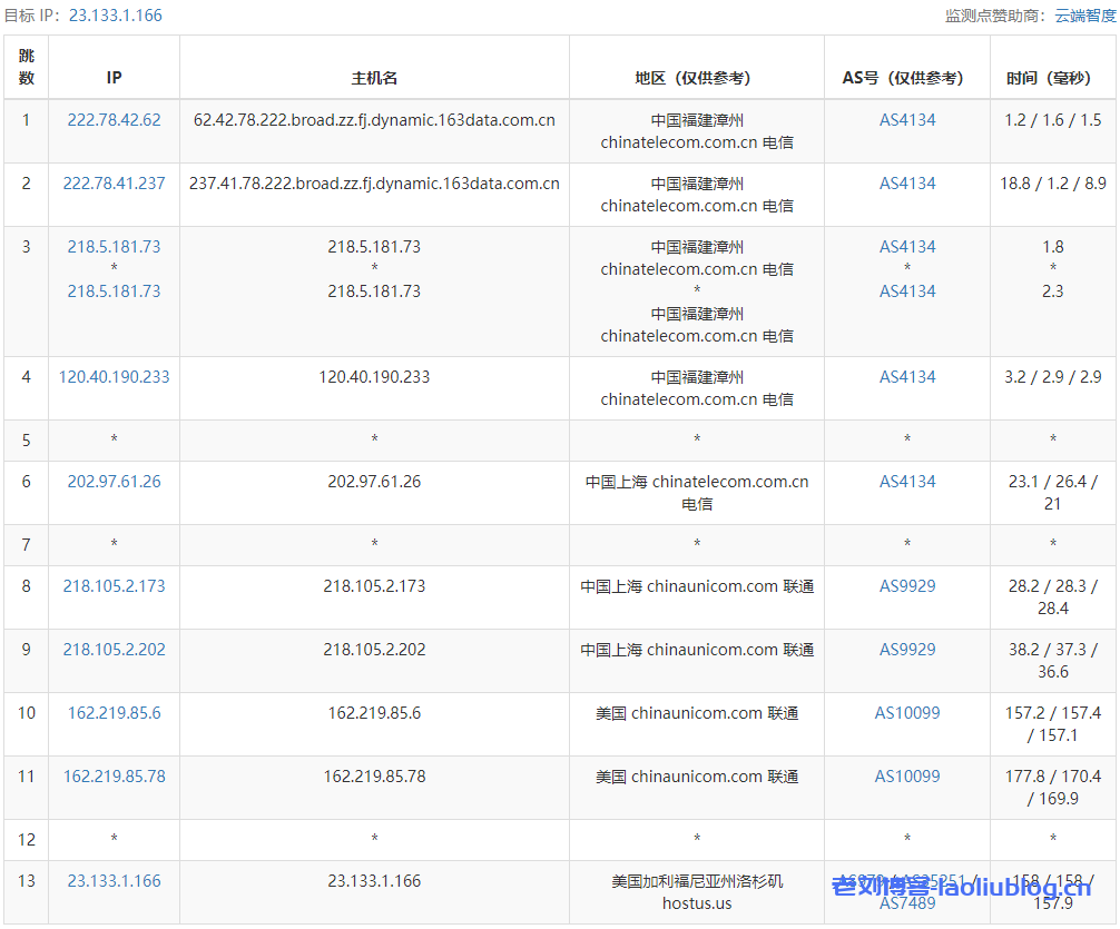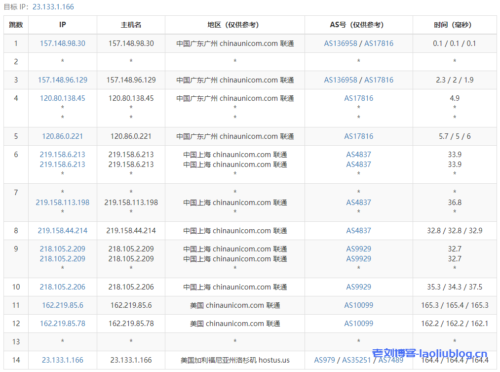 7 218.105.131.197 156.36 ms AS9929 China, Guangdong, Guangzhou, ChinaUnicom