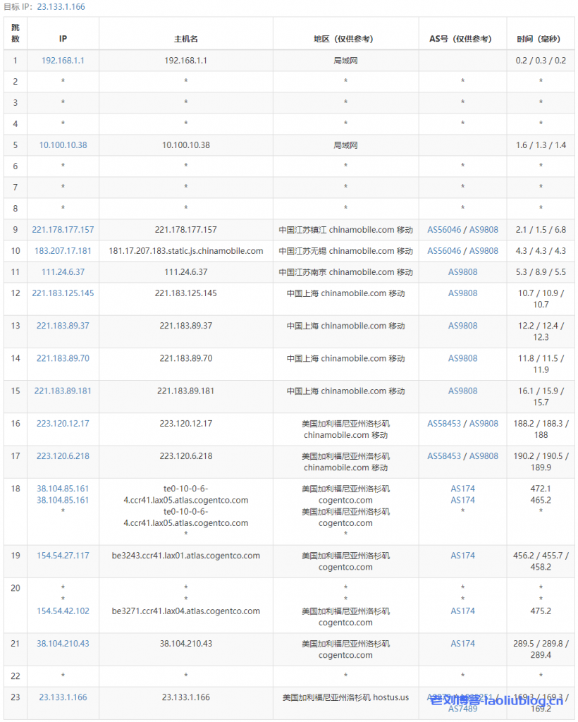15 211.136.95.226 176.03 ms AS56048 China, Beijing, ChinaMobile