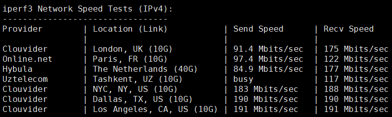 iperf3针对欧美的节点的数据测试