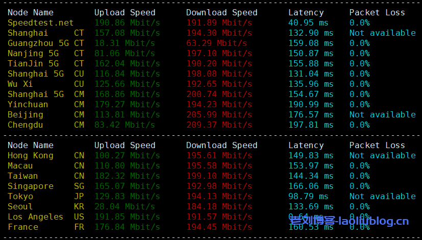 speedtest.net国内外节点测速,和官方描述的200Mbps带宽一致