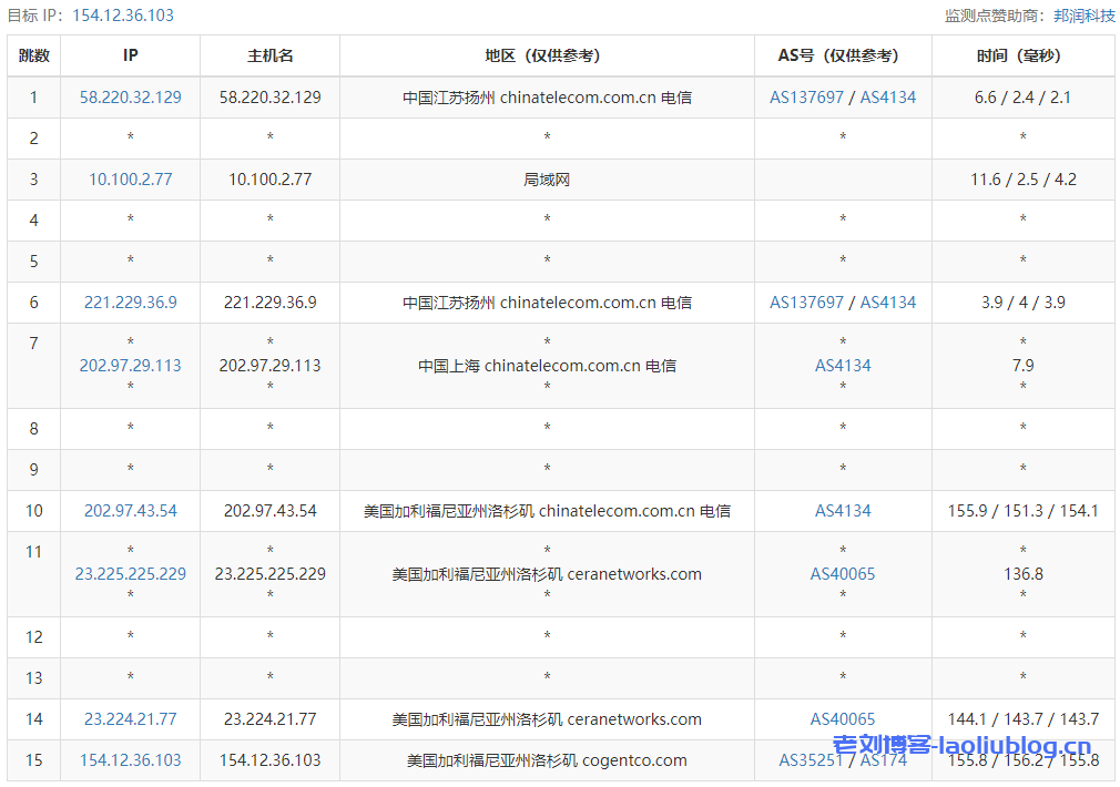 16 211.136.67.106 186.28 ms AS56048 China, Beijing, ChinaMobile