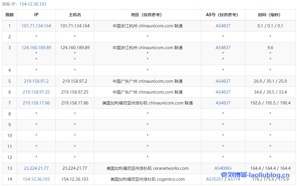 12 219.158.109.186 165.79 ms AS4837 China, Beijing, ChinaUnicom