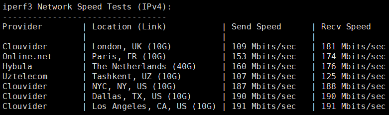iperf3针对欧美的节点的数据测试