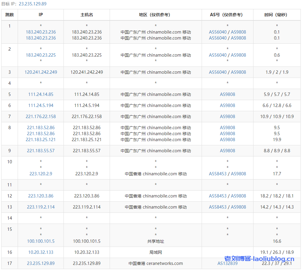 7 223.120.3.85 74.19 ms AS58453 China, Hong Kong, ChinaMobile