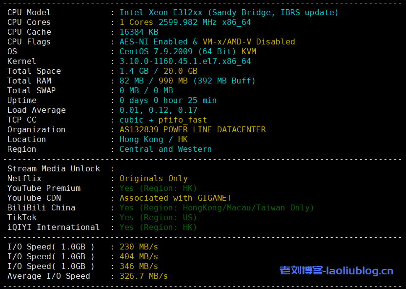 DigitalVirt香港CIA线路VPS配置信息测试,可以解锁美区TikTok,IO磁盘在326.7MB/s
