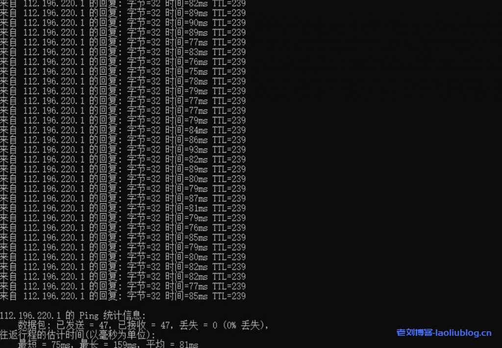 我本地延迟ping效果如下平均81ms 0丢包率:
