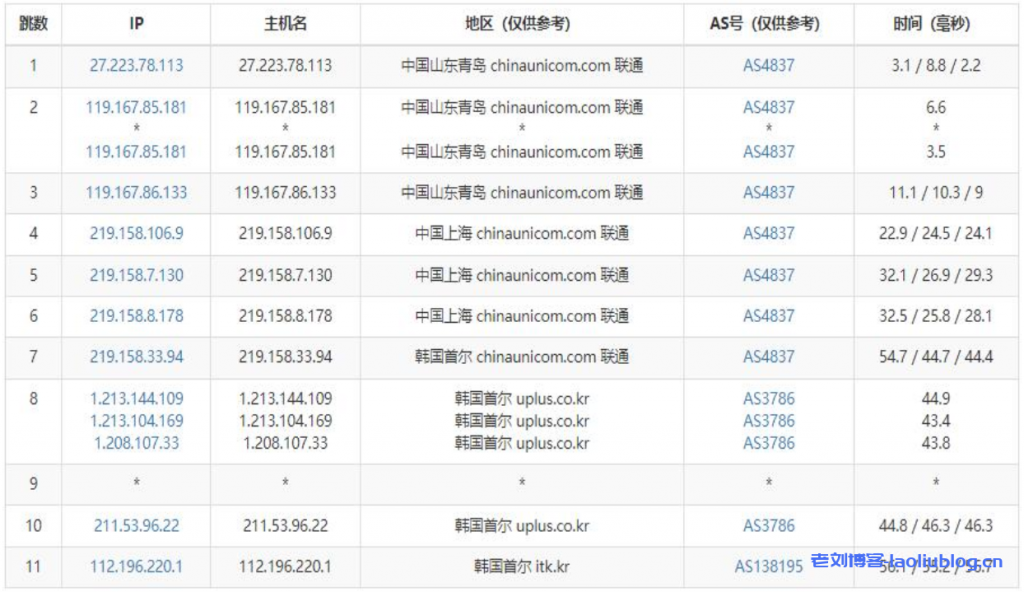 可以看到三网全是从上海网口出 直连韩国首尔机房 路由相当优秀的。
