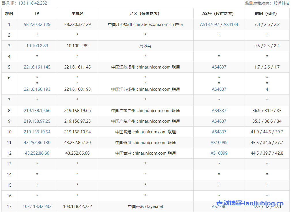 1 103.118.42.1 0.78 ms AS7586 China, Hong Kong, clayer.net