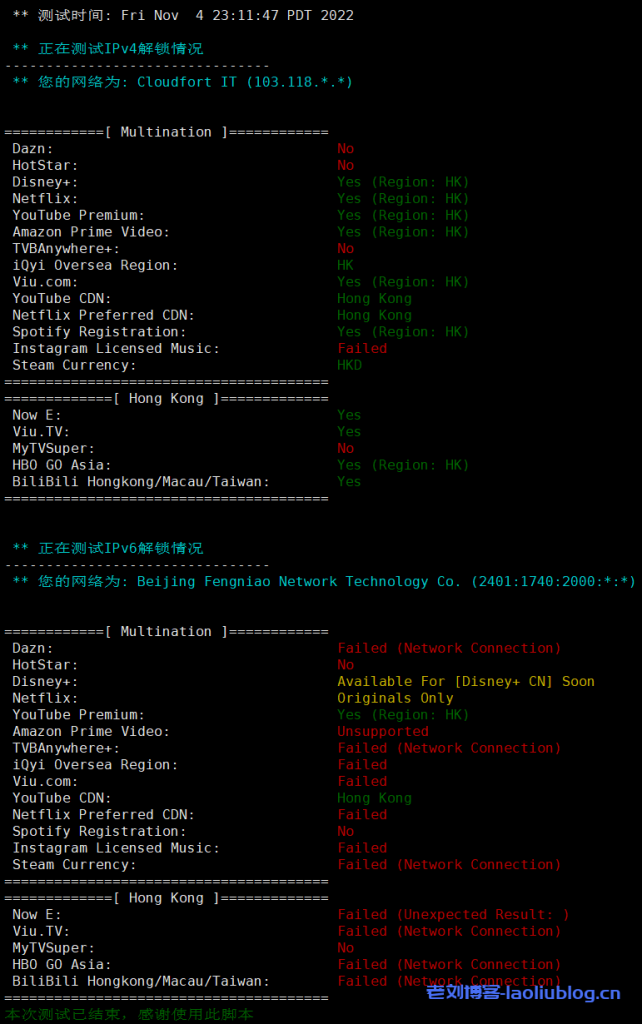 流媒体解锁情况测试