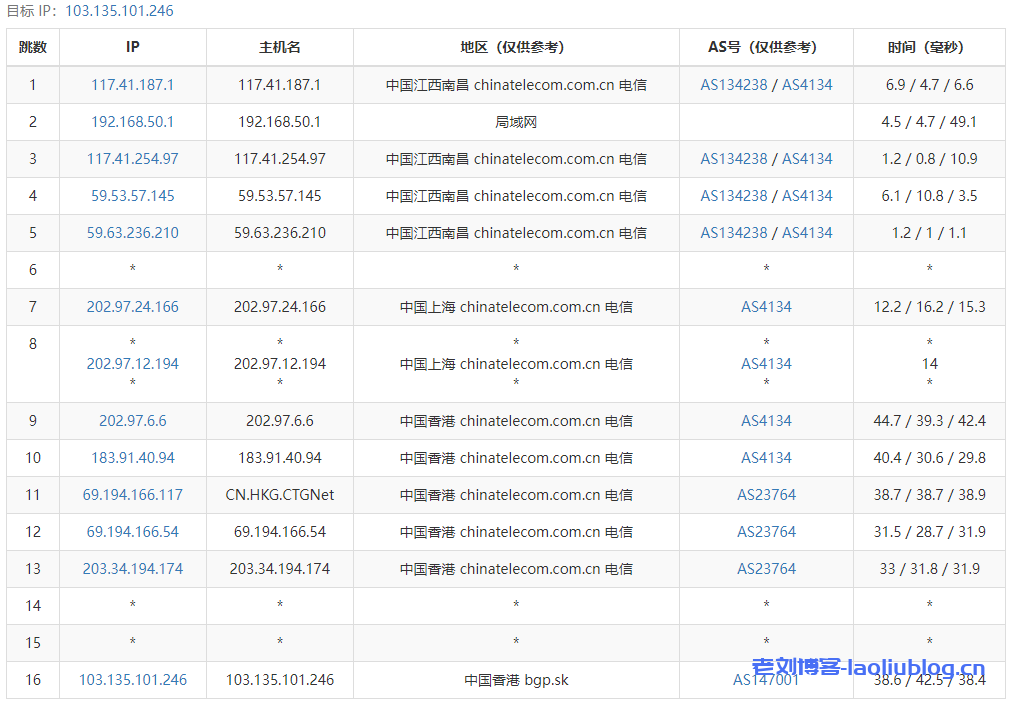 6 203.22.178.102 34.92 ms * China, Hong Kong, ChinaTelecom