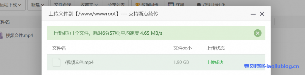 VPS本地上传、下载文件速度还是很重要的,1.9GB视频文件上传仅花费了不到7分钟,平均速度4.65MB/s: