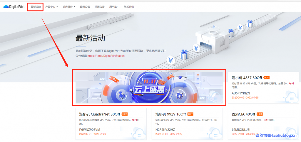 DigitalVirt首页戳导航“最新活动”进入”11.11云上盛惠“活动页面: