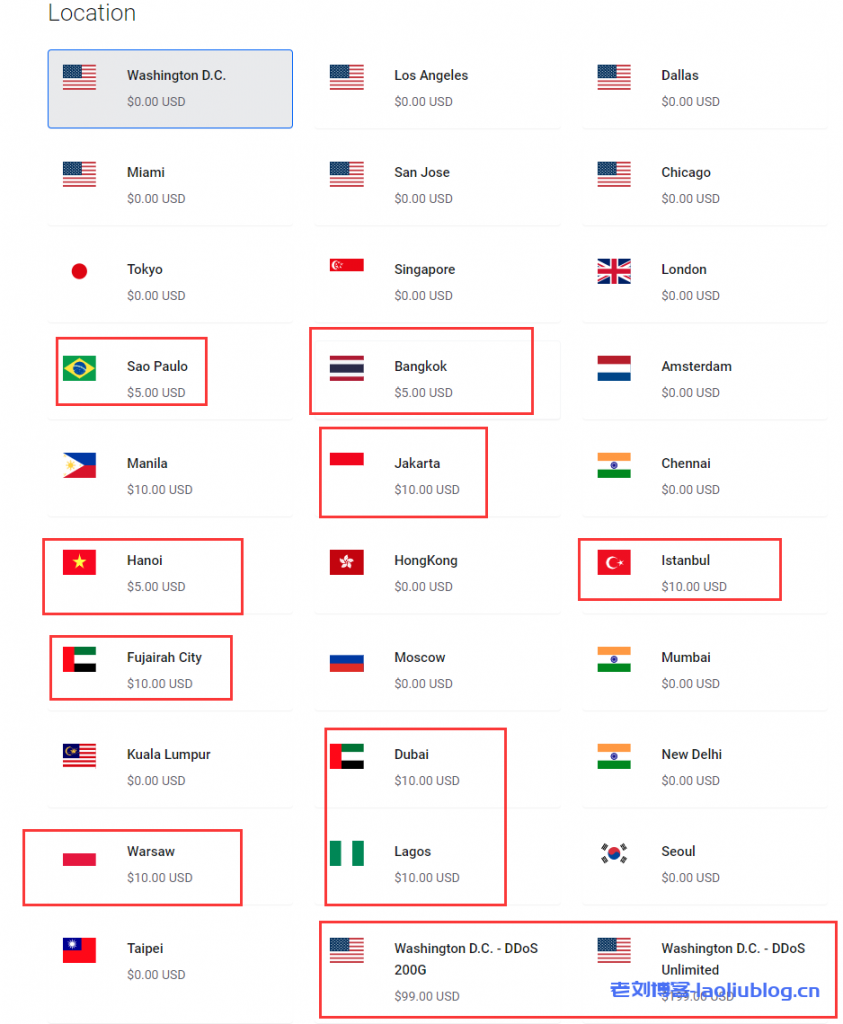 注意,加红框的是这些节点由于稀缺性会默认收取节点年付费用(图中价格已为年付),如果选择这些节点,那双11价格就是$11.11+节点费用。