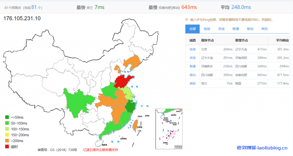 81个节点测试VPS网络延迟情况