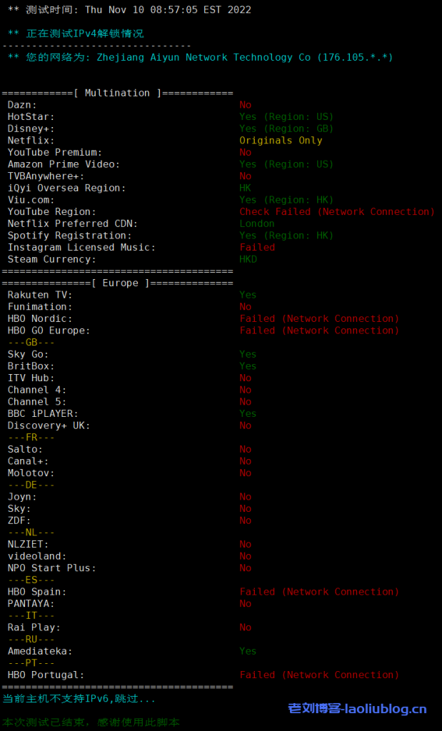 流媒体解锁情况测试