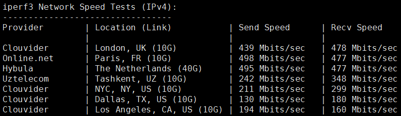 iperf3针对全球主要节点的数据测试