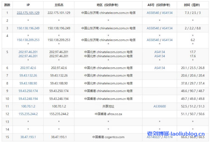 测试完了网络稳定性情况,我们再测试下这款香港站群服务器的去程和回程路由情况。