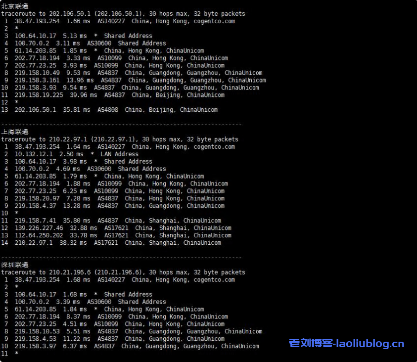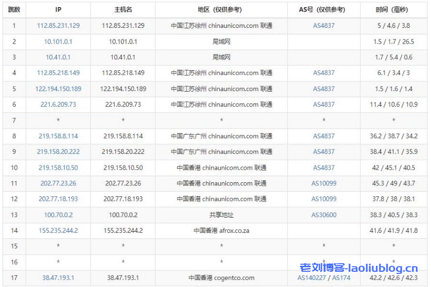 联通去程路由是从广州网口出去,直连香港机房,走的是AS4837联通优化线路。