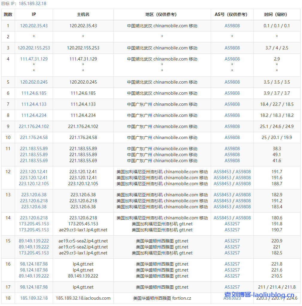 6 223.120.6.53 27.06 ms AS58453 United States, Washington, Seattle, ChinaMobile
