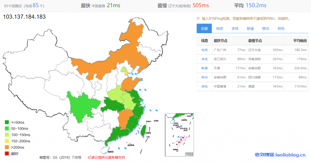 三网ping测试看网络延迟
