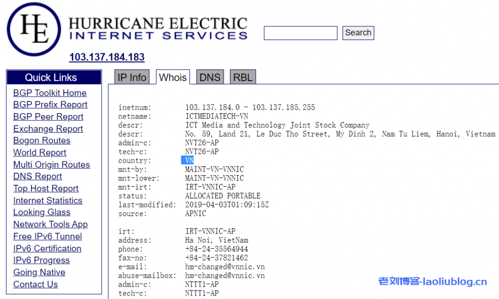1 103.137.184.253 6.21 ms AS140825 Viet Nam, Hanoi, hostingviet.vn