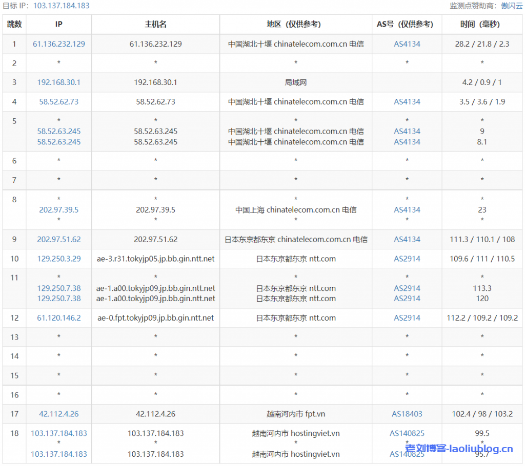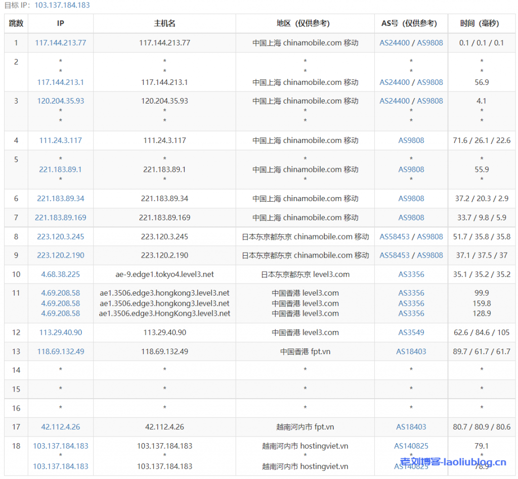 4 118.69.253.73 20.15 ms AS18403 China, Hong Kong, fpt.vn
