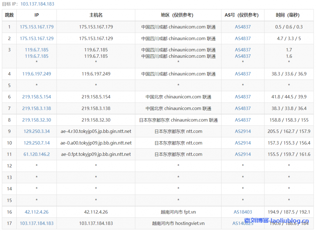 1 103.137.184.253 0.74 ms AS140825 Viet Nam, Hanoi, hostingviet.vn