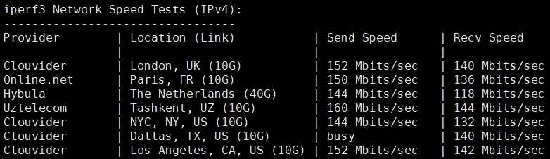 iperf3针对欧美的节点的数据测试