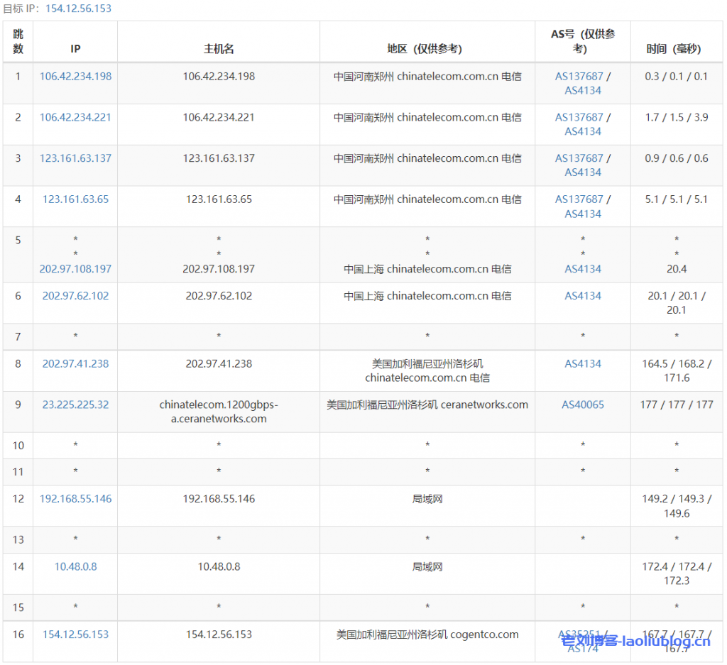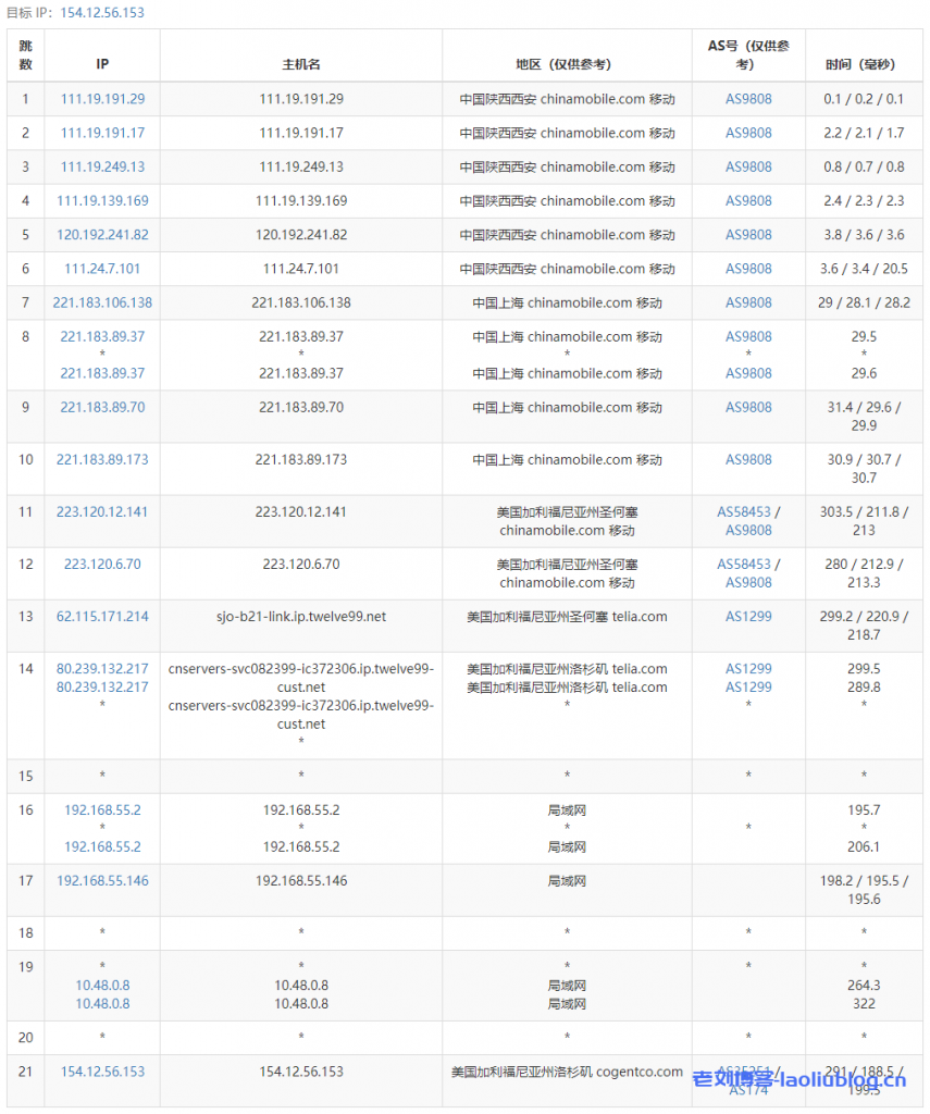 8 59.43.131.253 154.46 ms * China, Beijing, ChinaTelecom
