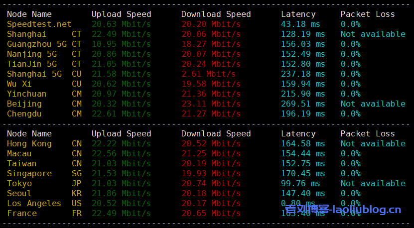 Speedtest.net国内外节点测速,20Mbps带宽可以跑满