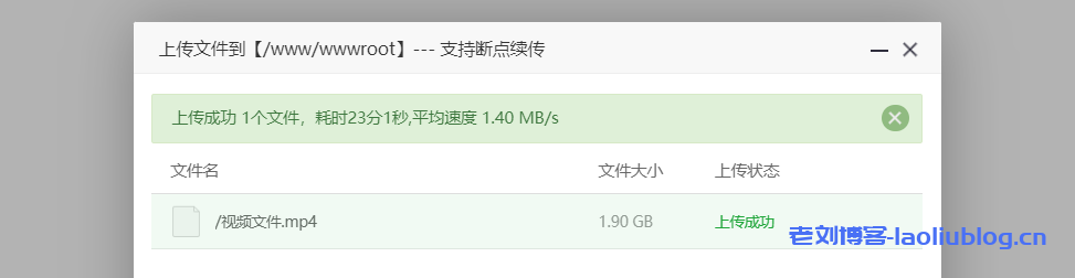 还是扔个1.9G的视频文件上去,下载速度平均1.4MB/s